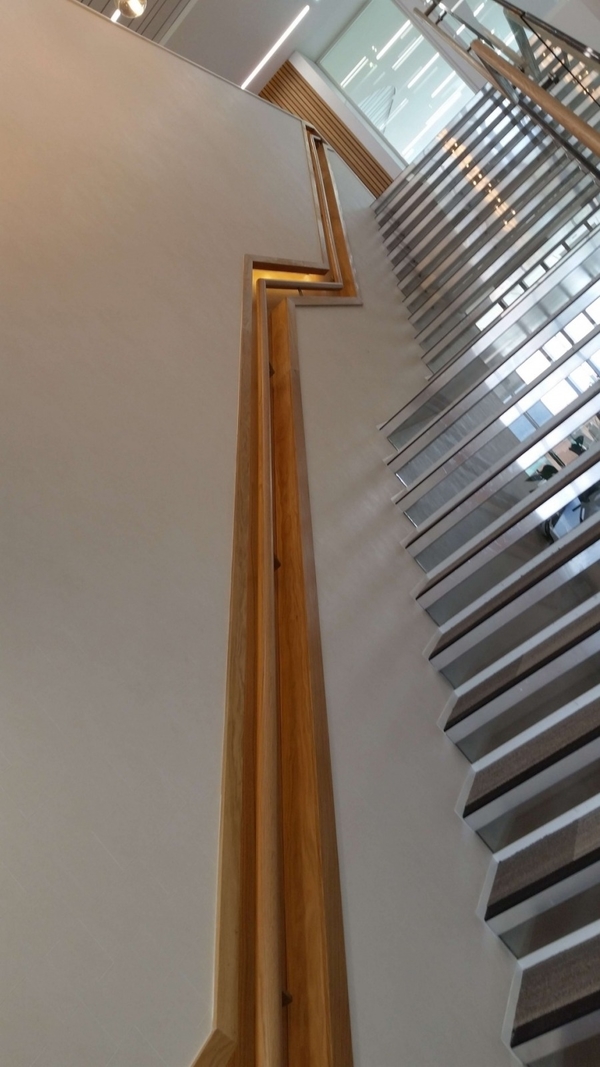 JB Interiors supplied the specialist joinery to this prestigious project for the corporate law firms Head office in Belfast. Over 2 floors in the new city quays office we supplied reception desks, boardroom wall paneling, feature ceilings, tea points collaboration areas. The oak slatted reception area was very well designed and finished to the highest standard.